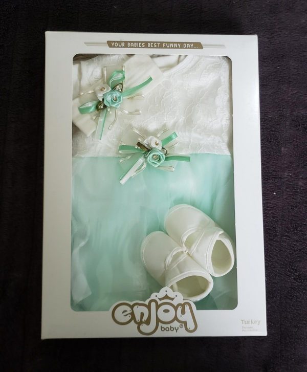 “Enjoy Baby” Baby Born White and Green Dress Set