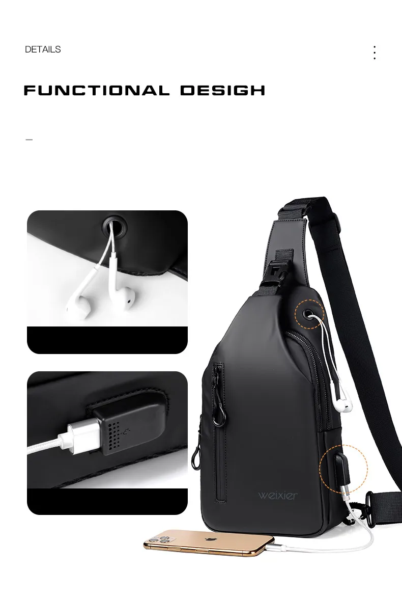 New Fashion Chest Bag Men’s Crossbody Bag Waterproof Shoulder Bags with USB Charging Short Trip For Male Travel Pack bag