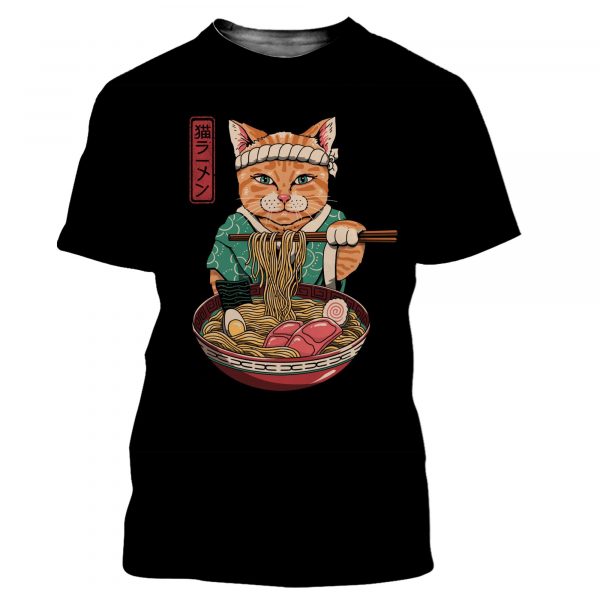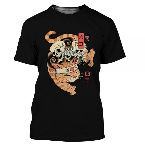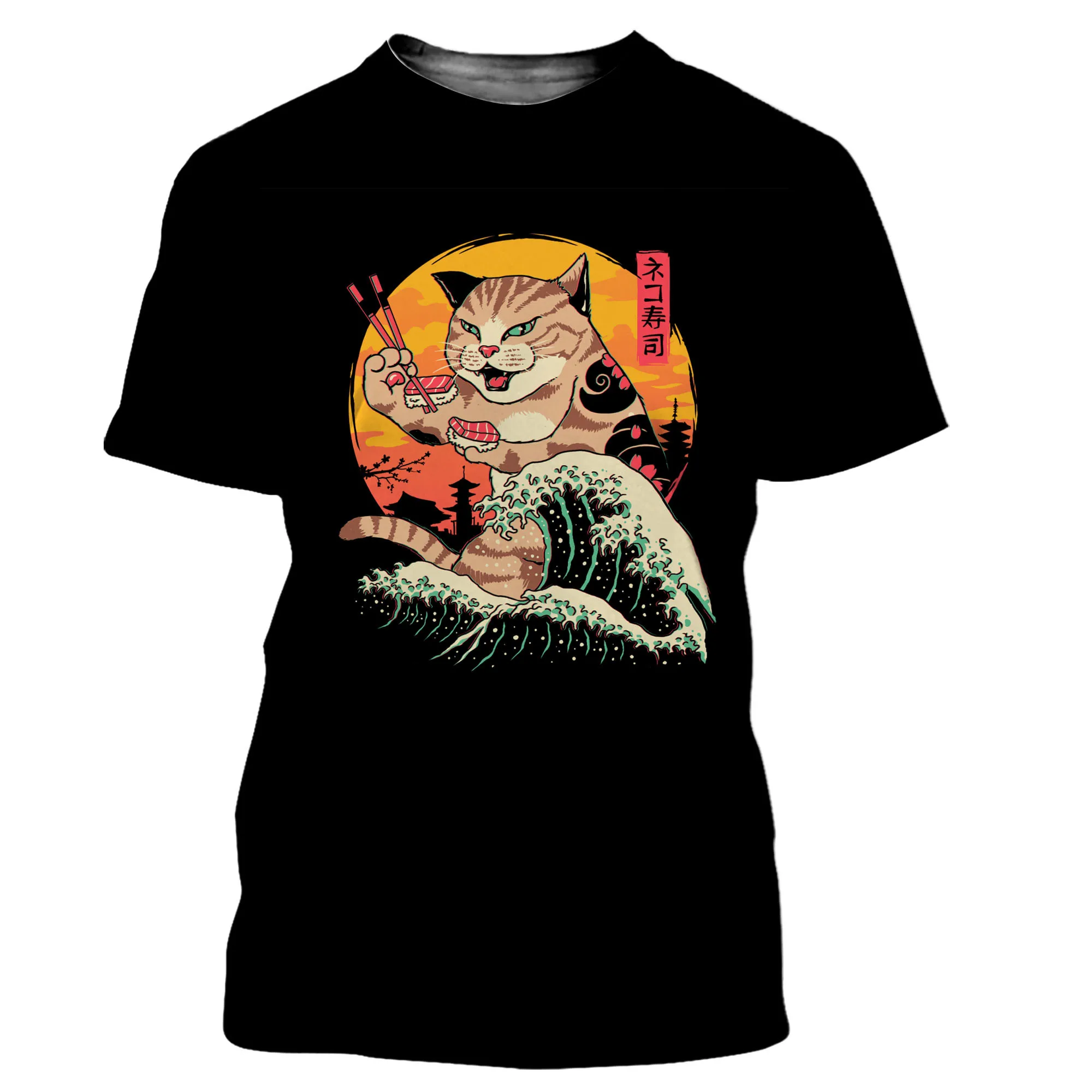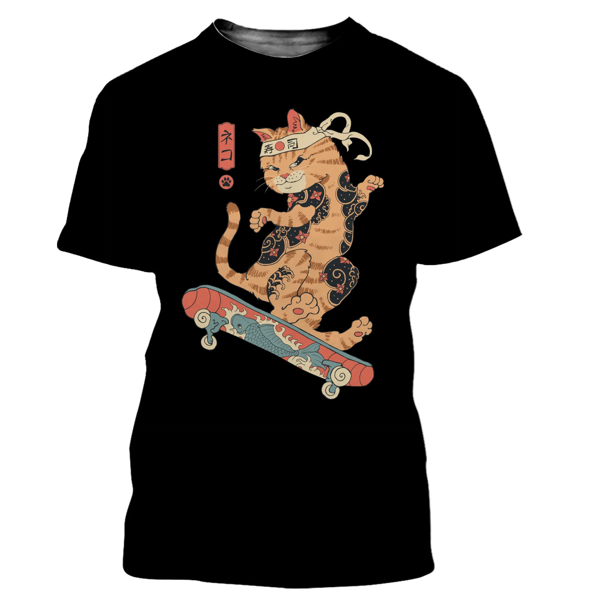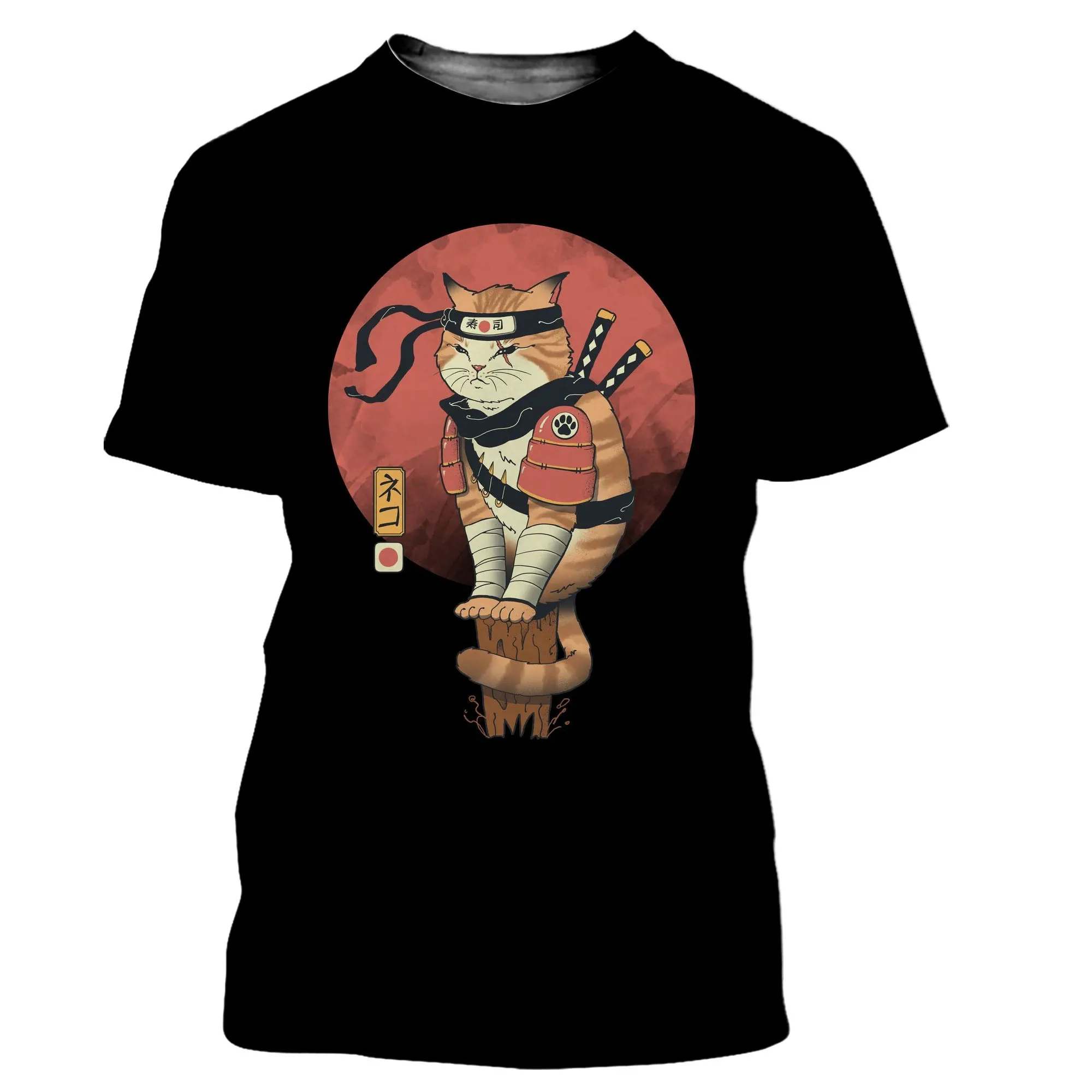 Samurai Cat T-shirt Men And Women Japan Harajuku Street Clothes Cartoon Comfortable And Refreshing Breathable Otaku Summer Short