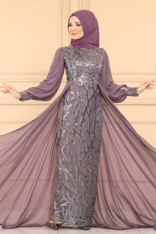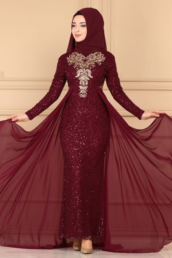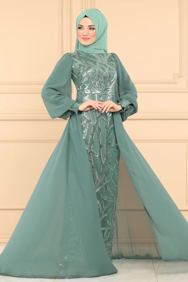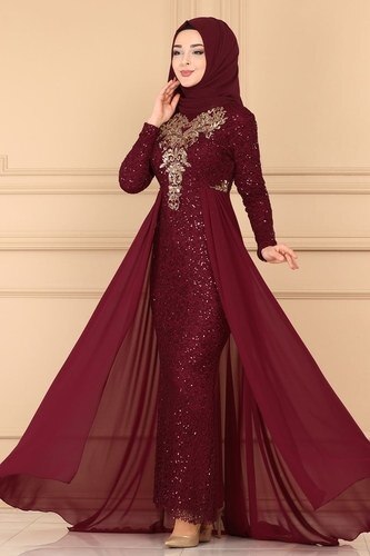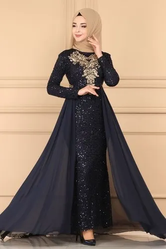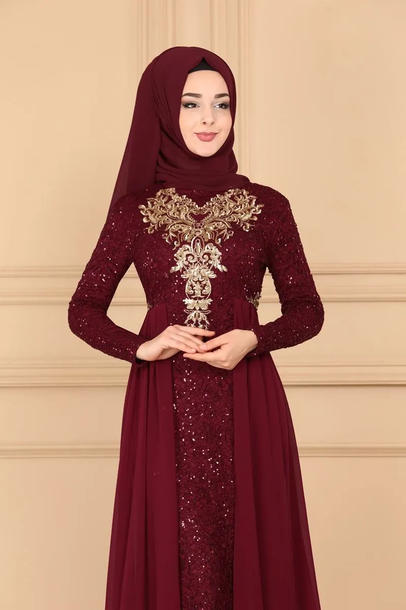 Sequined Islamic Clothing Evening Dresses Muslim Women’s Dresses Abiye Stamp Sequin Hijabs Long Sleeve Muslim Women Prom Party