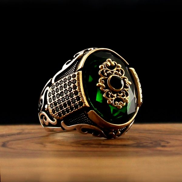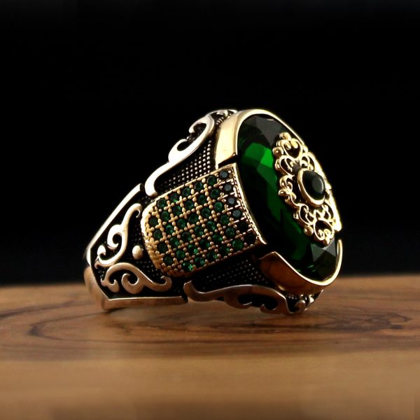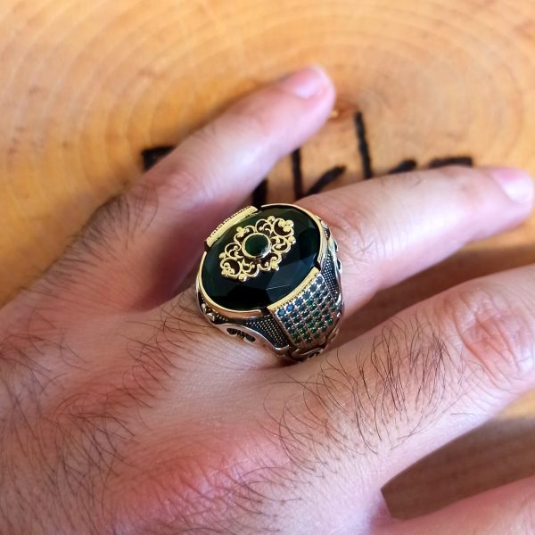 Turkish Style 925 Sterling Silver Ring For Men Natural Stone Zircon Onyx Aqeq Jewelry Fashion Vintage Gift Mens Accessories