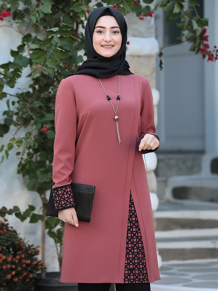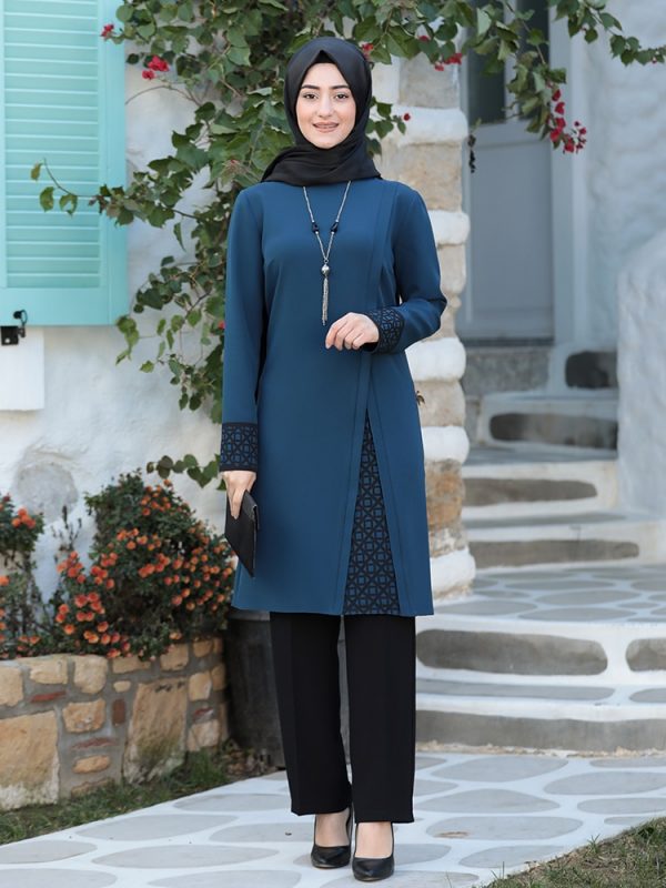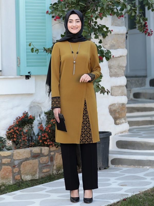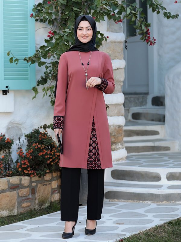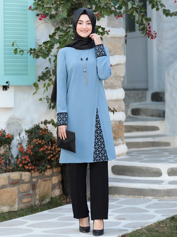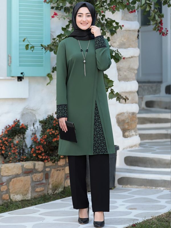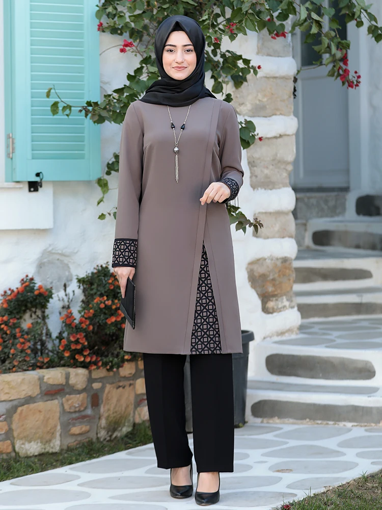 Women Hijab Suit Black Pants Patterned Tunic Combination Islamic Muslim Clothing New Season Made in Turkey High Quality Crepe