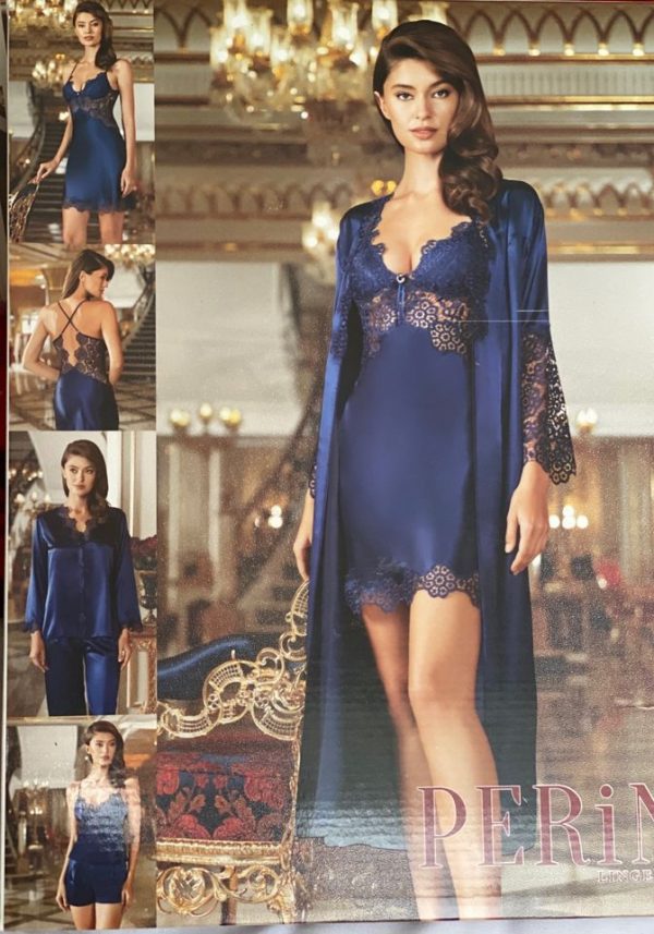 Women’s Satin 6- Piece Short Navy Blue Nightgown & Dressing Gown Dowry